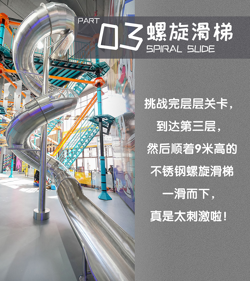 設(shè)計(jì)了27個(gè)不同形態(tài)、不同難易的空中步道關(guān)卡。能鍛煉大小朋友們的身體協(xié)調(diào)能力,鍛煉體能、鍛煉注意力。