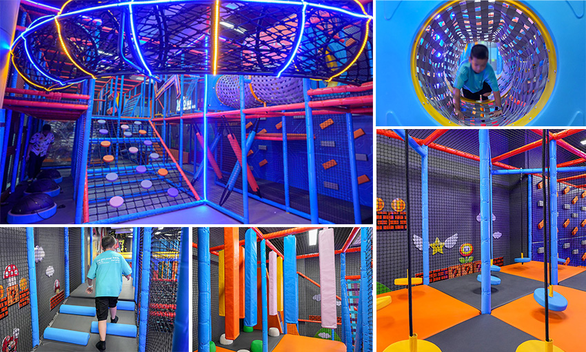 超級(jí)好玩的闖關(guān)項(xiàng)目,在這個(gè)區(qū)域,設(shè)計(jì)了障礙爬坡、森林探寶、鉆筒等功能項(xiàng)目。我們都變身為超級(jí)馬里奧,一起來闖關(guān)吧!