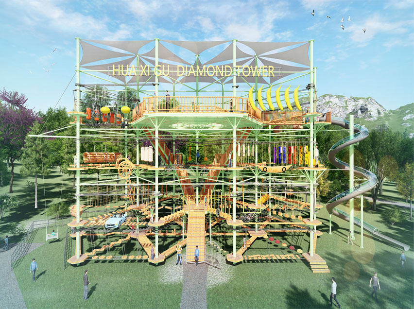 鉆石塔是一個立體探險娛樂綜合體,景區(qū)地標性運動游樂項目。包含尖叫滑梯、低空蹦極等,能滿足150個游客同時進行冒險體驗,適合熱愛挑戰(zhàn)極限的人群,也可以實現(xiàn)企業(yè)團隊建設、領導技能培訓、凝聚團隊,通過豐富的體驗帶給游客一個全天的刺激享受。被譽為運動游樂之王。