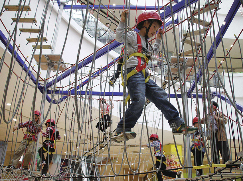 兒童拓展項(xiàng)目的設(shè)備功能以體能訓(xùn)練為中心,孩子穿戴好拓展設(shè)備之后全身心投入拓展挑戰(zhàn)對(duì)于啟發(fā)自身的認(rèn)知能力、意志力和交往活動(dòng)有極大的促進(jìn)作用。兒童拓展設(shè)備的挑戰(zhàn)性主要表現(xiàn)在對(duì)孩子心理身體素質(zhì)的考驗(yàn)上,整個(gè)拓展過(guò)程需要孩子不斷地極限挑戰(zhàn)、突破自我,挑戰(zhàn)成功能為孩子帶來(lái)巨大的自信心和克服困難的勇氣。