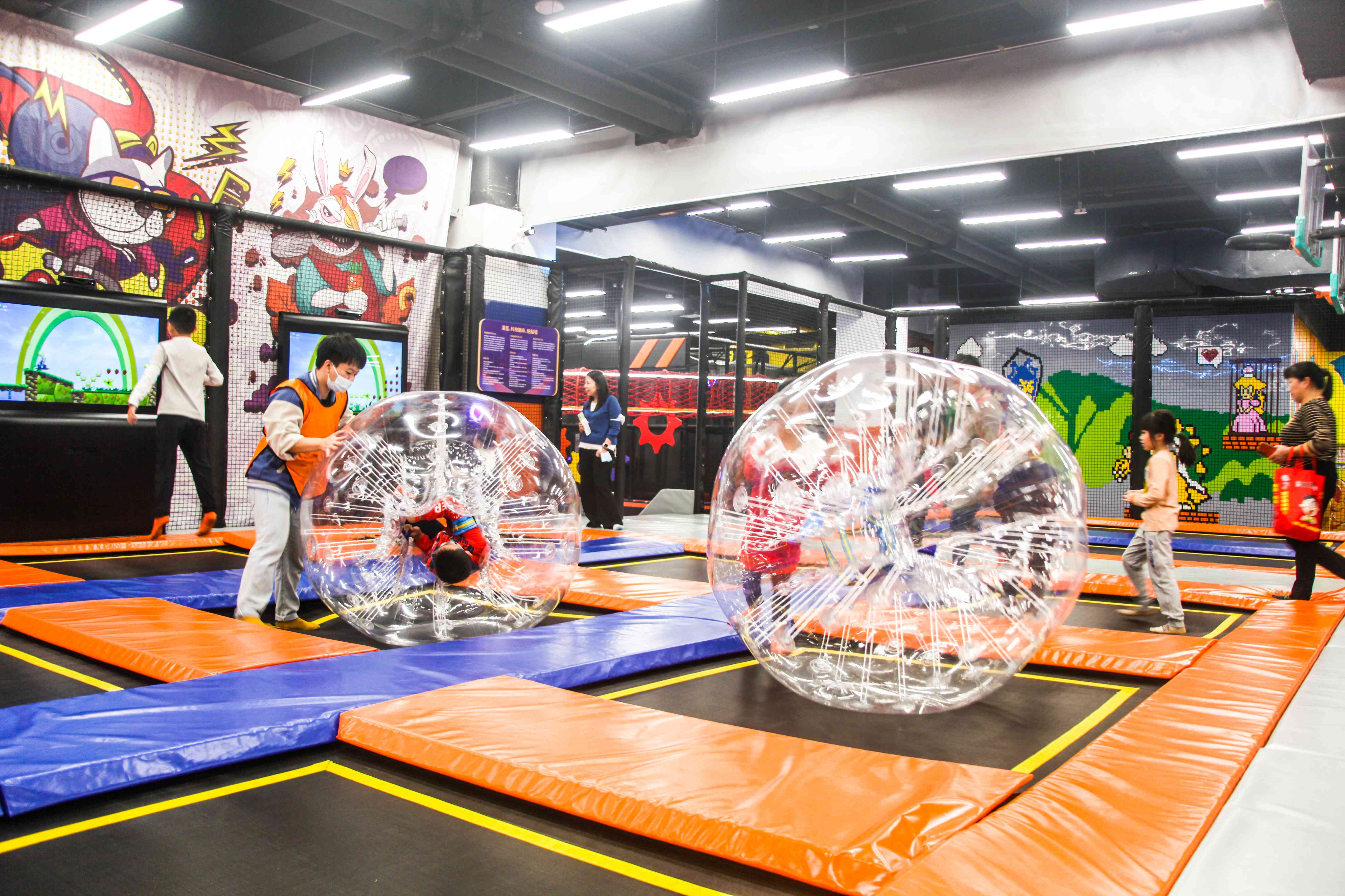 | 家庭親子核心型 | 定制化主題淘氣堡(集成滑梯、球池、益智面板)+ 多功能親子蹦床+ 軟包爬玩區 | 滿足1-6歲兒童核心玩樂與安全需求,兼顧家長休息互動。吸引周邊社區家庭高頻次消費。 | 投資集中,主題性強,能快速建立口碑。通過淘氣堡的包容性和蹦床的普適性確?;A客流量與高復用率。 |