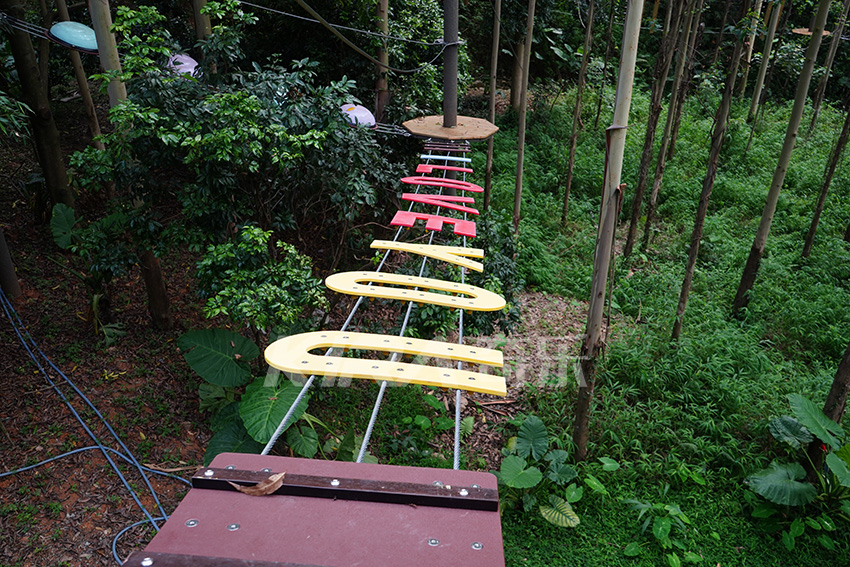 “勇者之路”挑戰線(核心體驗):這是項目的主體線路,充分利用了山林的坡度與樹木間距。線路中包含了長達百米的空中步道、離地數米高的樹間滑索、考驗平衡的緬甸橋以及需要團隊協作通過的旋轉攀爬網。游客在征服關卡的過程中,視野在樹林縫隙與開闊山谷間切換,體驗感極為豐富。