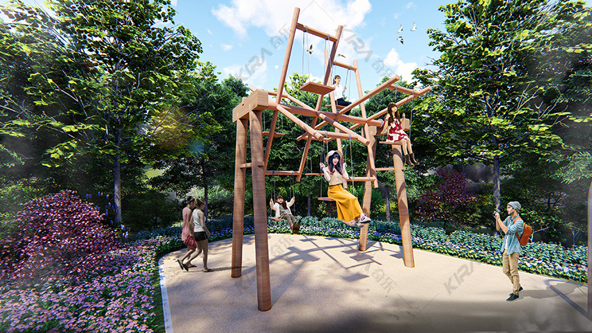 本項目適用于各種親子主題類的樂園,巧妙運用“熊貓”IP造型設計,集拓展、探險、滑道、飛索、蹦極、不銹鋼滑梯、攀巖、爬網等46種不同運動體驗的文化主題項目,結合“大灰熊”IP形象,融入相關設計元素,打造差異化的網紅IP主題性運動拓展營地綜合體。 在裝飾設計上采用竹葉和竹竿的綠色設計元素,以原生態、自然風格為基調,采用原木、繩網和不銹鋼等柔韌度好的生態材料。滿足大眾貼近自然、主題鮮明、寓教于樂的兒童素質訓練教育親子樂園的精神訴求。