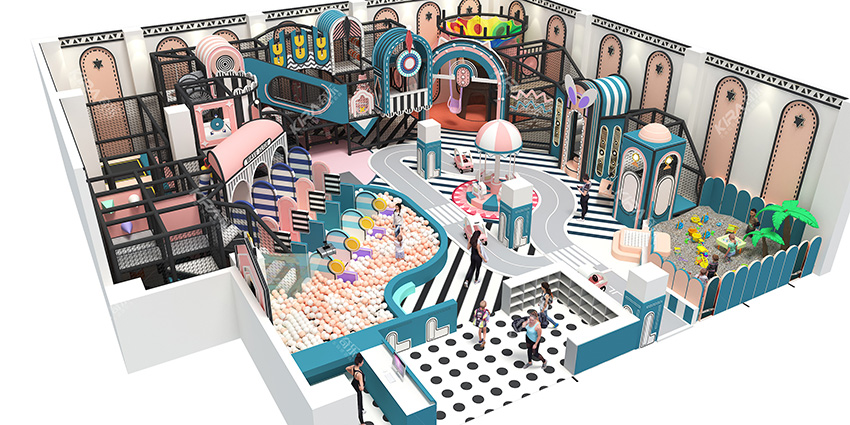 在裝飾設計上采用竹葉和竹竿的綠色設計元素,以原生態(tài)、自然風格為基調(diào),采用原木、繩網(wǎng)和不銹鋼等柔韌度好的生態(tài)材料。滿足大眾貼近自然、主題鮮明、寓教于樂的兒童素質訓練教育親子樂園的精神訴求。